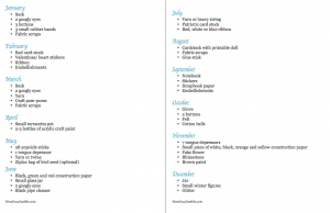 craft kit printable pg 2-3 December 2, 2014 By Julie Anne Leave a Comment craft kit of month supply list